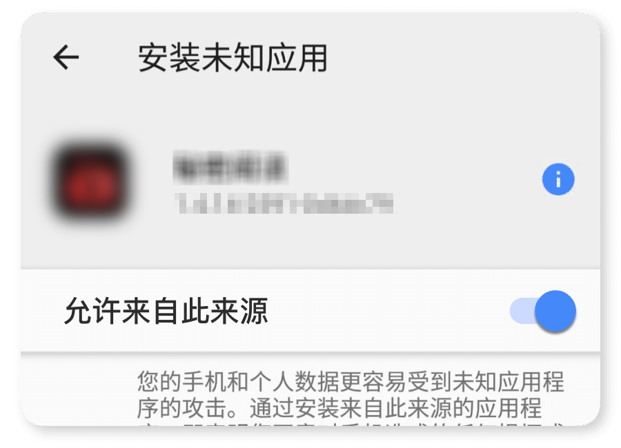 1.手机设置中搜索[安装未知应用],选择我们的应用后,开启[允许来自此来源的应用]